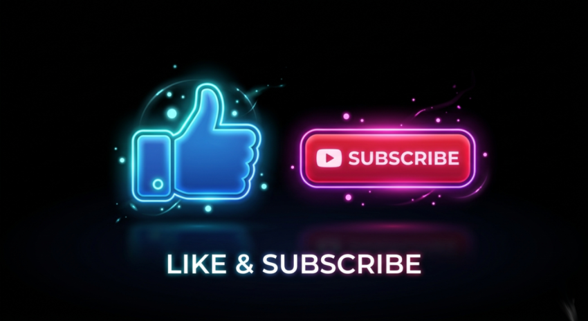 Glowing Thumbs Up and Subscribe Icons in Neon 3D Style