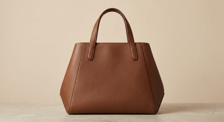 Minimal Sculptural Leather Tote Bag in Matte Brown