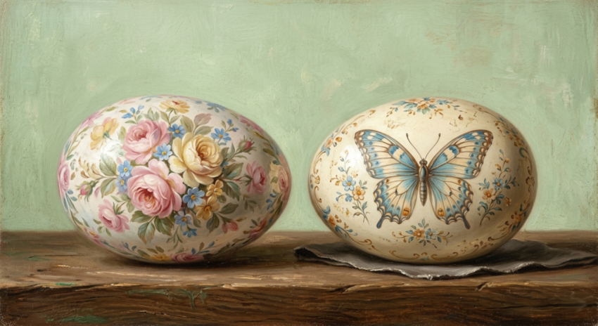 Vintage Decorative Eggs with Floral and Butterfly Art