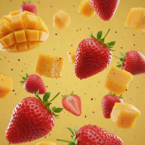 Fresh Strawberry Mango and Pineapple Cubes Floating