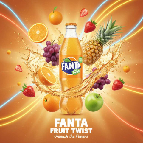 Fanta Fruit Twist Advertising Mockup AI Prompt