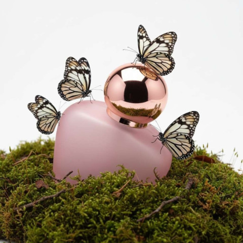 Pink Perfume Bottle on Moss Texture AI Prompt