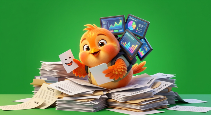Cute Cartoon Orange Bird 3D Character Holding Papers