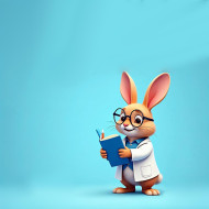3D Cartoon Rabbit with Book and Pen AI Generated Image