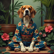 a beagle dog wearing floral kimono ai image dog kimono 3d dog cartoon ai generated images thinking serenity meditation animal cartoon flowers 3d flowers cultural traditional wear dog portraits dog character pets portrait dogSimilar Photos