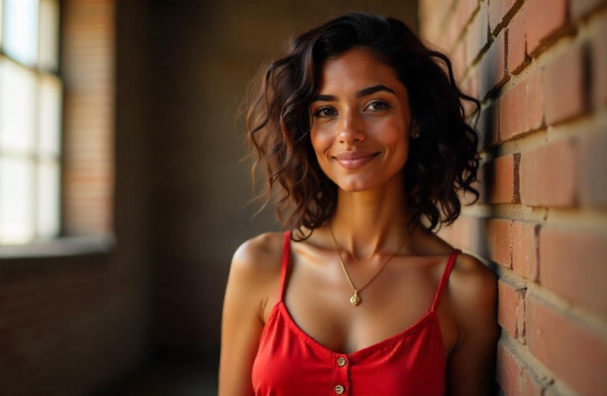 gold chain looking out a beautiful girl against a wall cute girl cute woman young woman relaxed contemplative pose red dress girl wall girl leaning on wall brick wall lifestyle people teenager outdoors cool attitude female person pullover smiling standing teenage girlSimilar Photos