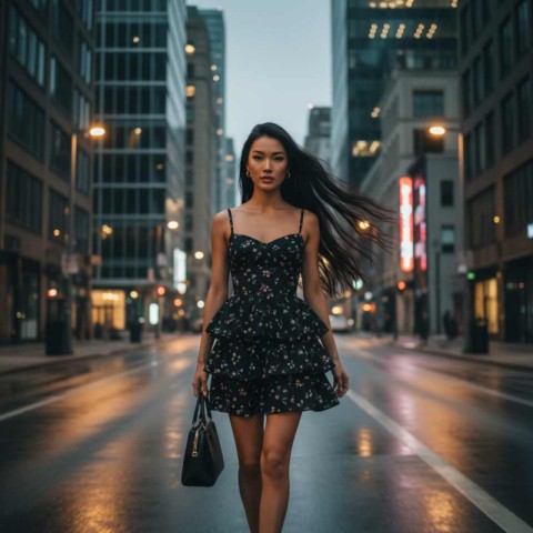 a beautiful girl wearing a black skirt walks through the city center beautiful girl black skirt walking on the street cute girl city night view lights night lights hand bag black color dress woman girl female fashion walking cute ai images picturesSimilar Photos