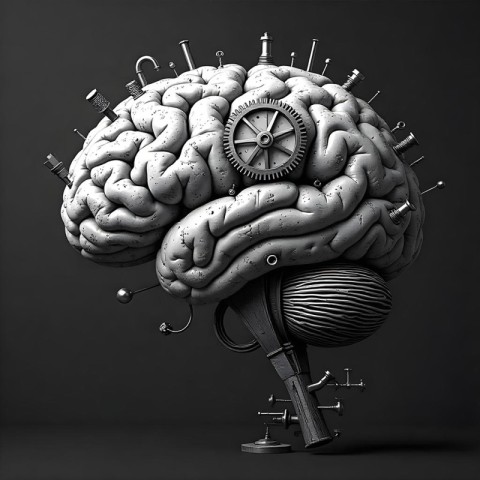 A Black and White Human Brain Mechanical Objects AI Image