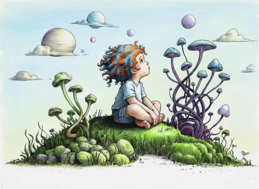 a boy boy sitting on the grass thinking ai image painting art anime boy young boy sitting on grass boy thinking cartoon illustration yong boy sitting boy thinking ai images cute boy tall grass generative ai mushrooms cartoon mushrooms grass clouds streamSimilar Photos