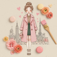 flowers flower love shapes shape tree cute girl character hand bag creative a charming whimsical fashion illustration playful style empire building tokyo tower character girl standing doll fashion illustration textured paper romantic expression hairstyle brown hair pink wool coat wide cuffs skirt pink hearts elements paintbrush city fusion storytellingSimilar Photos