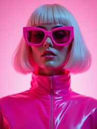 a fashionable beauty wearing pink glasses pink dress fashion week fashion show trendy dress latest fashion fashion woman pink glasses ai images white hair pictures fancy dress creative studio close up young woman portrait hairstyle pose pretty accessories passion style fashion backgroundSimilar Photos