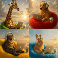 animals sitting on bean bag in the sky working on laptop realistic starbucks coffee cup clouds natural animal ai images knowledge life enjoying cinematic magical background animal cartoon animal cartoon images 3d animal images 3d ai animal wild wild animal education learning online courses online training digital learning 3d renderSimilar Photos