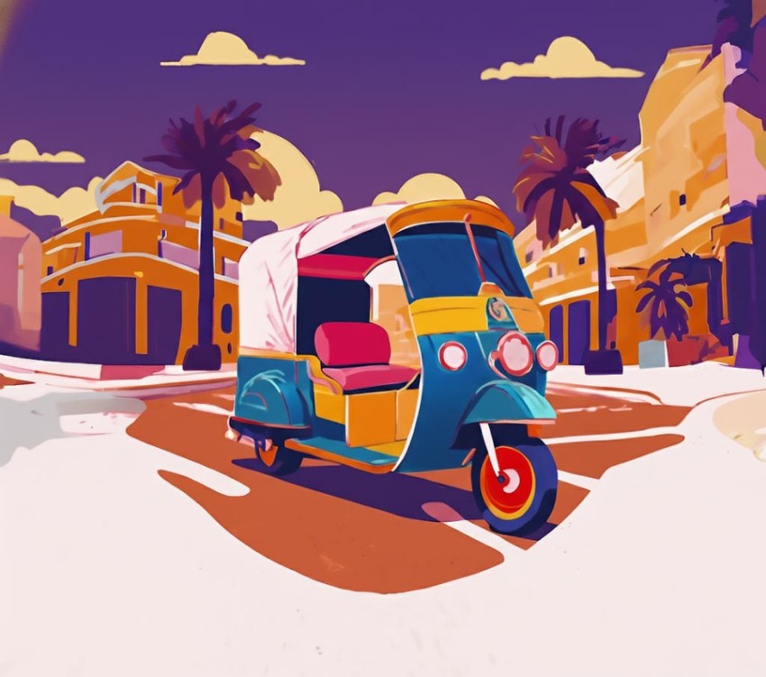 tuktuk rickshaw auto rickshaw landscape art ai image street transport indian street transport trees buildings travel design art vector illustration city tricycle retro vintage isolated road indian truck art rickshaw vector illustration designSimilar Photos