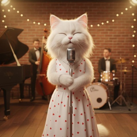 Beautiful Cat Performing Jazz Music in a Cozy Bar
