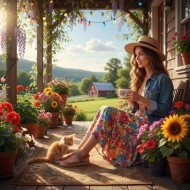sunny day bright colorful flowers woman sitting farmhouse modern female modern woman flowers red roses sunflower clouds sky sun cute girl cat baby cat beautiful woman woman drinking coffee farmhouse lifestyle rural morning coffee woman sitting at farmhouse coffee break countryside lifestyle morning coffee scene peaceful rural life aesthetic lifestyle photo woman relaxing outdoors farm house background cozy morning coffeeSimilar Photos