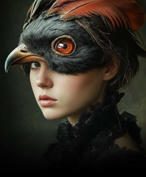 Bird Mask Woman Manipulation Art AI Image
