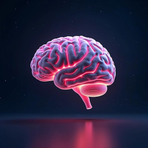 Brain 3D Render with Neon Colors AI Generated Image
