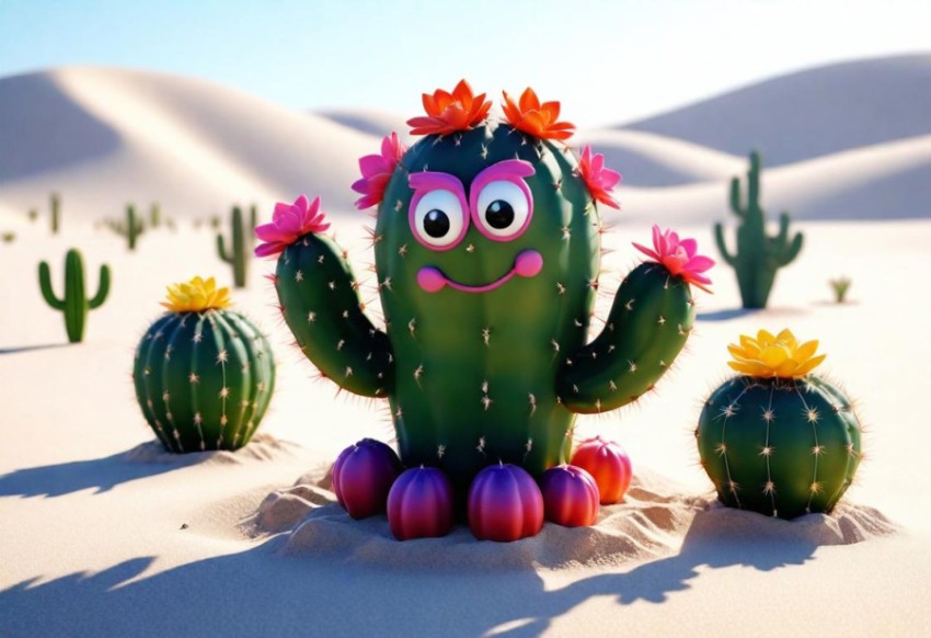 Cactus Tree Cartoon 3D AI Generated Image