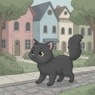 Cat Walking Along a Quiet Small Town Sidewalk