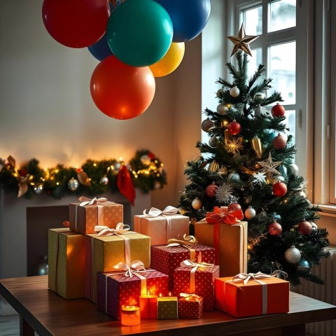 Christmas Festival Celebration with Gifts AI Generated Image