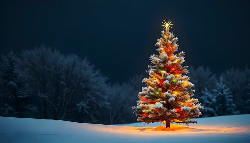 Christmas Tree with Snow AI Generated Image