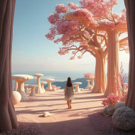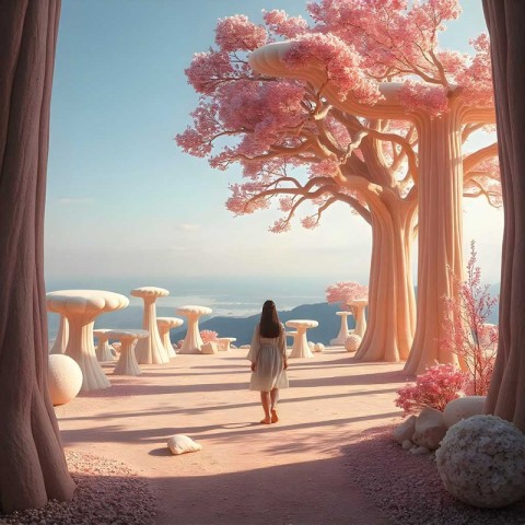 Classical Animes Surreal Imaginative World with Unique Organic Structures Girl Walking AI Image