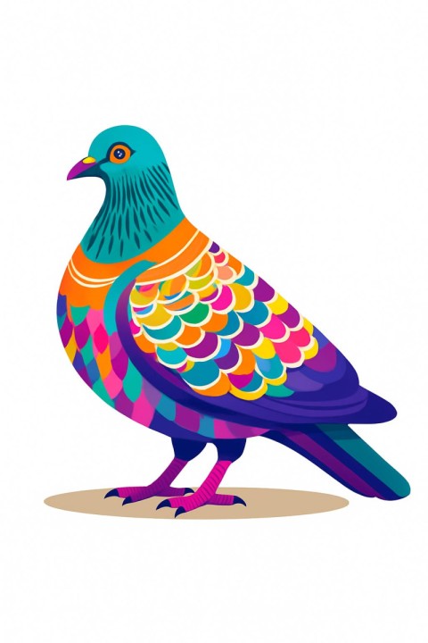 Colorful Pigeon Bird Drawing Art AI Generated Image