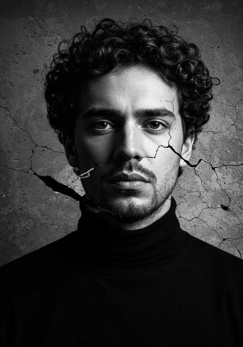 cracked man face abstract emotion emotional art ai image turtleneck portrait style face dissolving curly hair textures cracked wall cracked face effect cracked wall effect cracked wall ai images cracked ai image hell human sad sad face sad emotionSimilar Photos