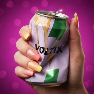 Crushed Aluminum Energy Drink Can Held in Hand