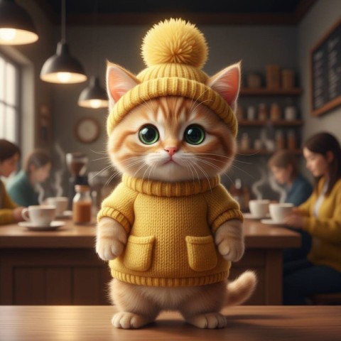 tabby kitten kitten in sweater cute cat wearing clothes yellow sweater cat adorable tabby cat kitten portrait pet fashion cozy cat outfit domestic kitten cute animal photography cute cat baby cat cartoon cat animation charecterSimilar Photos