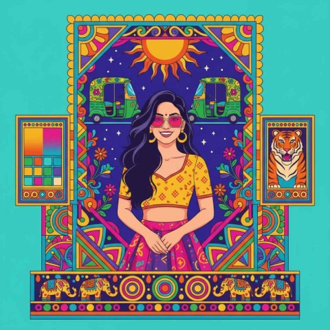 indian girl elephants tigers flowers girl vector illustration diwali festival doodle art illustration template creative dance vector art digital art banner design diwali art diwali clipart diwali wish mandala diwali diya diwali banner design diwali template creative template design doodle art template festival doodle auto rickshawSimilar Photos