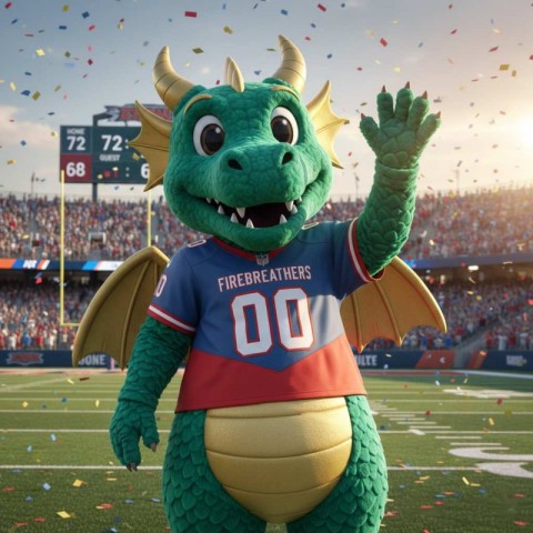 Dragon Mascot in Stadium Arena