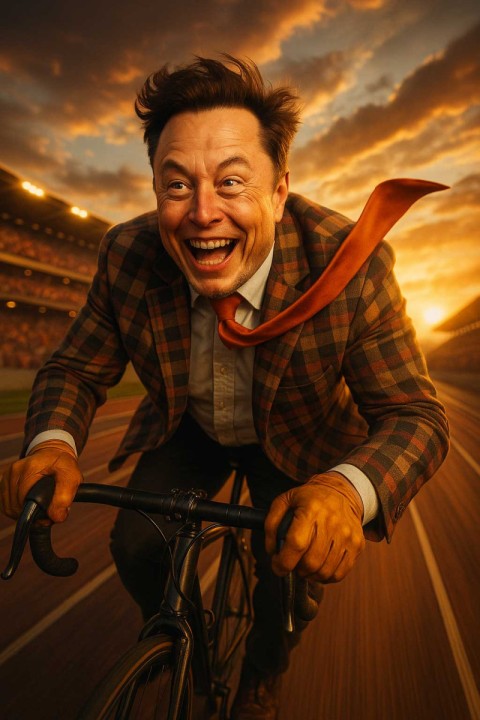 Elon Musk Riding a Bicycle on a Race Track AI Image