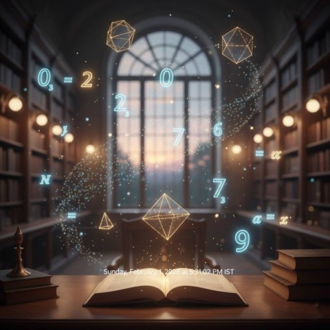 Magical Realistic Math Elements Floating in the Air Concept