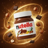 Floating Jar of Nutella Chocolate Hazelnut Spread on Dark Background