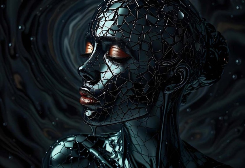 glossy black oil girl on oil girl effects ai generated images ai generated image reflections black oil water glossy black oil black woman virtual digital hologram artificial intelligence robot intelligent communication information cyber ai head black women black girl deep futuristic electronic system brain creative black wave fountain bubble liquid flow isolatedSimilar Photos