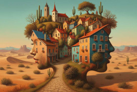 houses in the shape houses in the shape of a human face human face the desert desert home desert houses trees manipulation house manipulation creative images eco friendly houses in desert no water desert trees ai background ai images mepiks ai picturesSimilar Photos