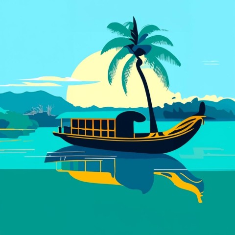 village scenery nature beautiful drawing indian village scenery vector image of boat sailing on a village pond festival of south india holiday background happy onam festival background kerala onam festival images kerala tourism traditional boat village boating onam background digital art illustration sky moon coconut treeSimilar Photos