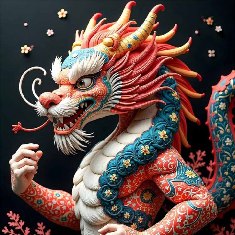 Japanese Style Dragon God Colorful Threads AI Generated Image