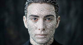 Luxury Androgynous Male Model Portrait Covered in Swarovski Crystals