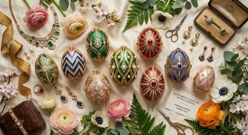 art deco fabergé style moodboard easter eggs flat lay luxury easter aesthetic gold easter eggs fabergé style design art deco easter theme spring moodboard fashion jewelry inspiration elegant egg decoration cinematic flat lay premium easter background glitter gold eggs stylish seasonal design highend easter visuals decorative eggs photography spring luxury concept easter banner design easter poster design easter background festival easter offer saleSimilar Photos