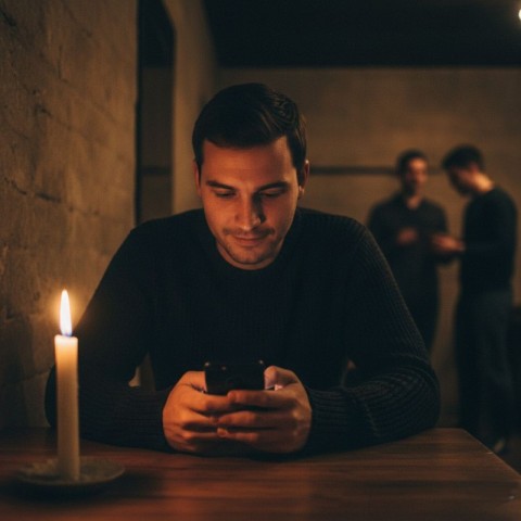 romantic night indoor scene man using mobile at candle light romantic candle light dinner scene man chatting on phone at table night indoor lifestyle photography cozy candle light atmosphere modern communication concept man texting on smartphone low light restaurant setting evening dinner mood warm ambient lighting scene romantic scene chating man chating mobile young man chating on cellClara