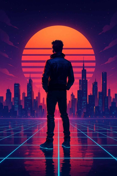 sunset glow man standing front futuristic city ai generated image man standing in front of a futuristic city generative ai images technology neon buildings building night city night view ai city sky line alien planet satellite communication science internet virtual wallpapers ai pictures sunset ai backgroundSimilar Photos