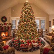 massive christmas tree christmas tree glowing lights gifts living room wide angle warm glowing lights golden lights beautiful wrapped gifts christmas tree full lights traditional 90s christmas tree gold ribbons flickering burns room green ribbons holidays festival magical lights home lighting fire gift boxes christmas background banner christmas images christmas banner images christmas tree trainSimilar Photos