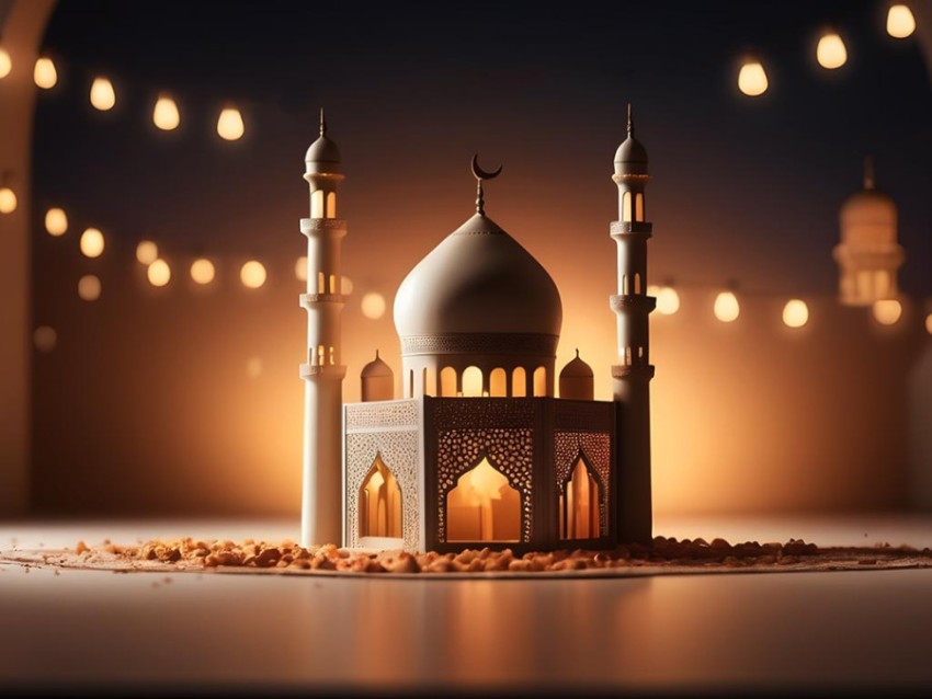 Mosque Eid Mubarak with Lightings AI Generated Images