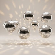 Multiple Silver Disco Balls Floating in Slow Motion