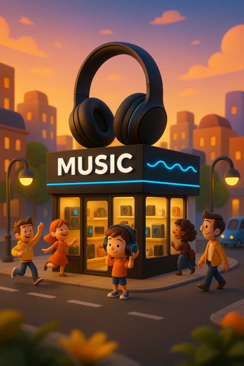 bluetooth music station ai generated image girl cartoon characters music streaming audio music track listening music songs head phone 3d female 3d characters music shop cartoon man cartoon woman 3d head phone device style visualizer thought street happy characters road car street lights buildings lights night lightsSimilar Photos