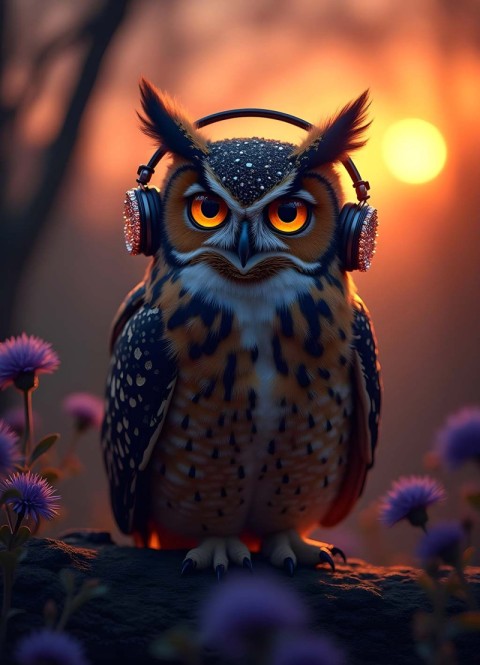Owl in Shiny Headphones AI Generated Image