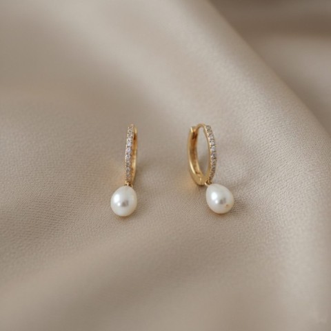Pair of Gold Pearl Earrings on Elegant Jewelry Background