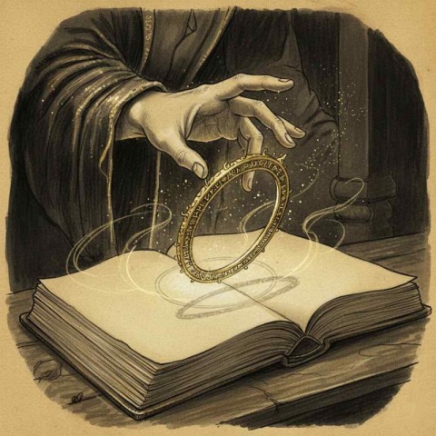 Mystical Hand Sketching a Magic Circle in an Ancient Open Book